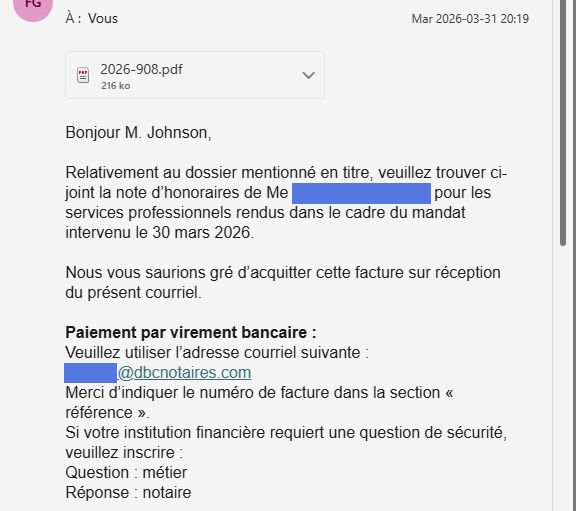Pourquoi est-ce que le montant avant taxes est de 925 $ plutôt que le 901 $ initial, tel que montré ici à quelques reprises dans les chapitres précédents ? Parce que, comme je disais, il a fallu que la notaire me produise une copie neuve du testament, puisque la version fournie par ce même bureau il y a 25 ans était invalide. Ce sont eux qui ont commis cette erreur. Mais c’est moi qui dois la leur payer.