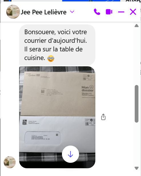 Tandis que je suis à Québec, je reçois ce courriel de JP, mon ex-beau-frère, qui loge dans mon appartement officiel dans la ville de Saint-Jean-Baptiste.