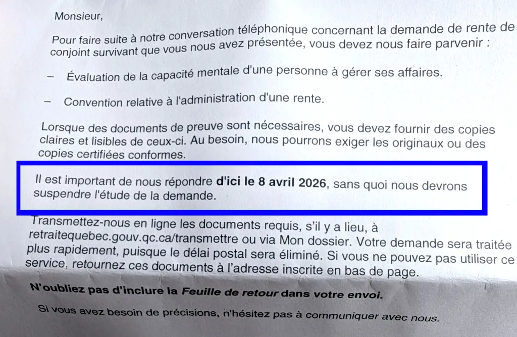 - J’appelle Retraite Québec pour demander de reculer la date limite.