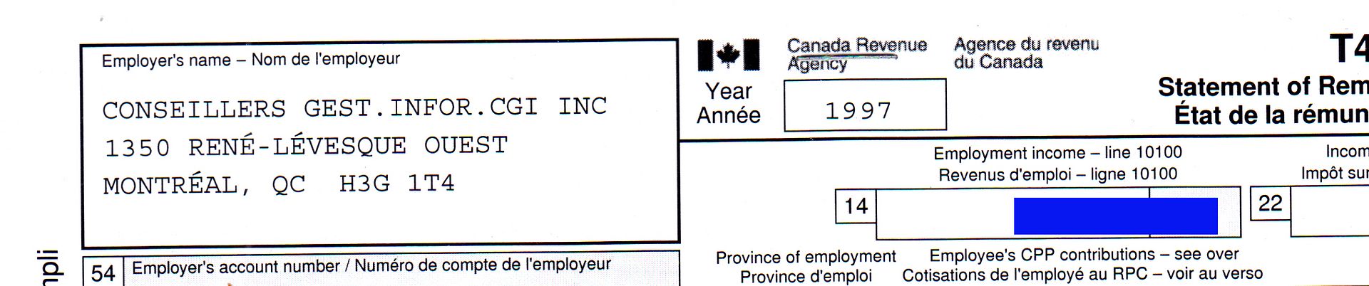 MOI: Et de août 1997 à avril 2000, j’étais employé à CGI, ce que confirment mes rapports d’impôts.