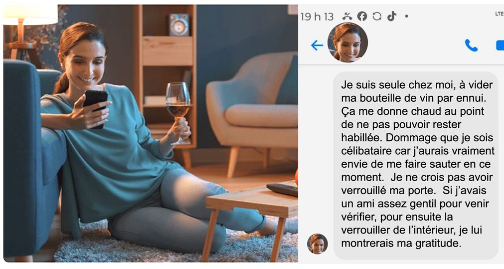 Les médias nous rapportent souvent des histoires d’agressions sexuelles commises par des hommes sur des femmes trop ivres pour être capable de consentir. L’homme a donc la triste réputation d’être allumé sexuellement par une femme qui a bu. Ainsi, une femme qui a envie de se faire prendre sexuellement par un homme sera portée instinctivement à lui dire qu’elle boit du vin, chez elle, seule. Ele peut faire ceci de manière inconsciente, tout comme elle peut avoir planifié son coup. D’une manière comme de l’autre, en lui annoncant ceci, elle s’offre en tant que proie afin d’allumer le prédateur en lui.