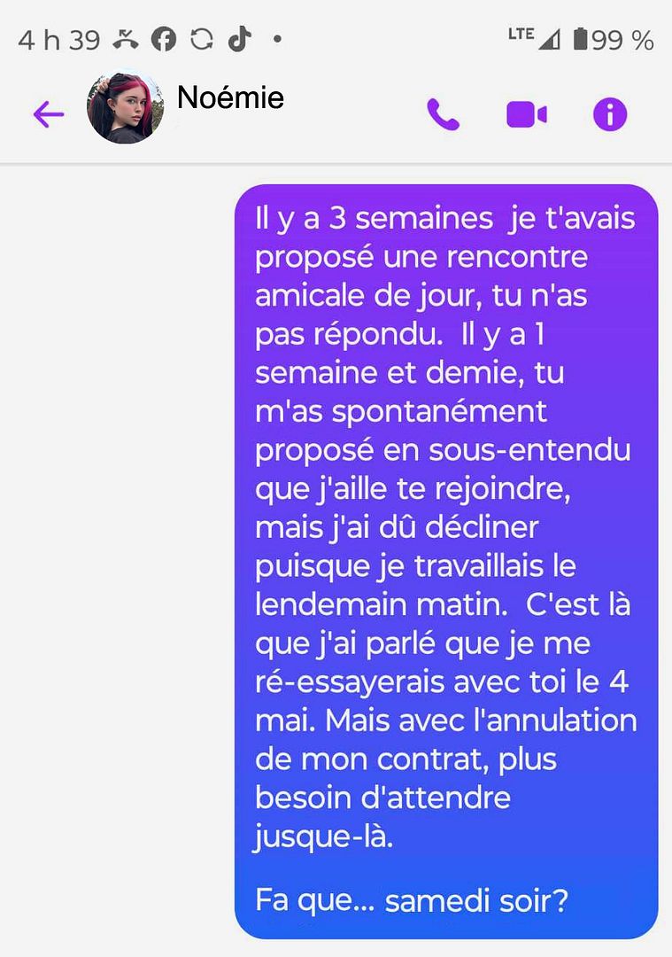 Ça ne peut pas être plus clair. Noémie a perdu intérêt pour moi.