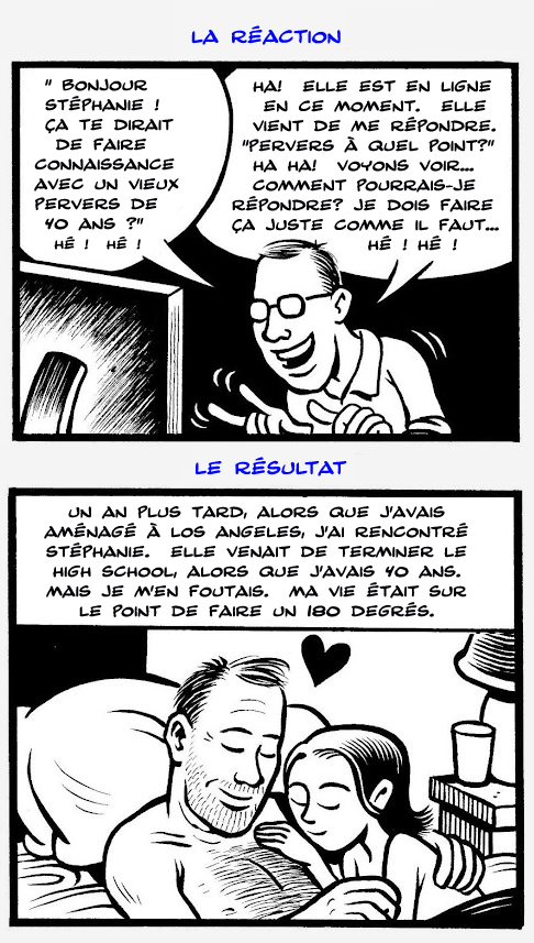J’aurais dû prendre une leçon du bédéiste Joe Matt, lorsqu’il décrit comment il s’est retrouvé en couple avec une fan de 18 ans.