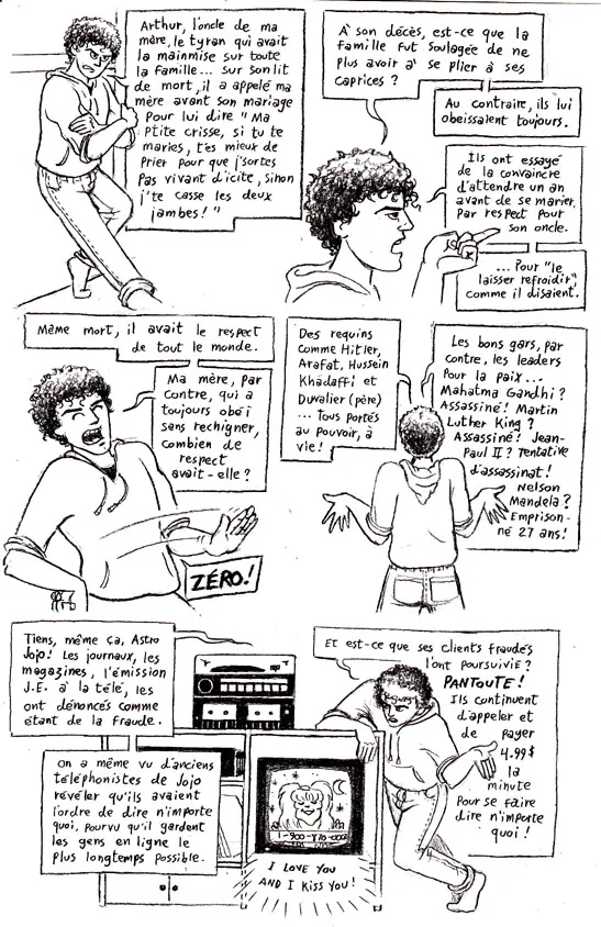 À partir de ce jour, et pendant une quinzaine d’années, j’ai produit une grande quantité de textes et BD. À ceci s’est ajouté Internet, avec de nombreuses pages dans lesquelles j’étalais mes revendications sans la moindre retenue.