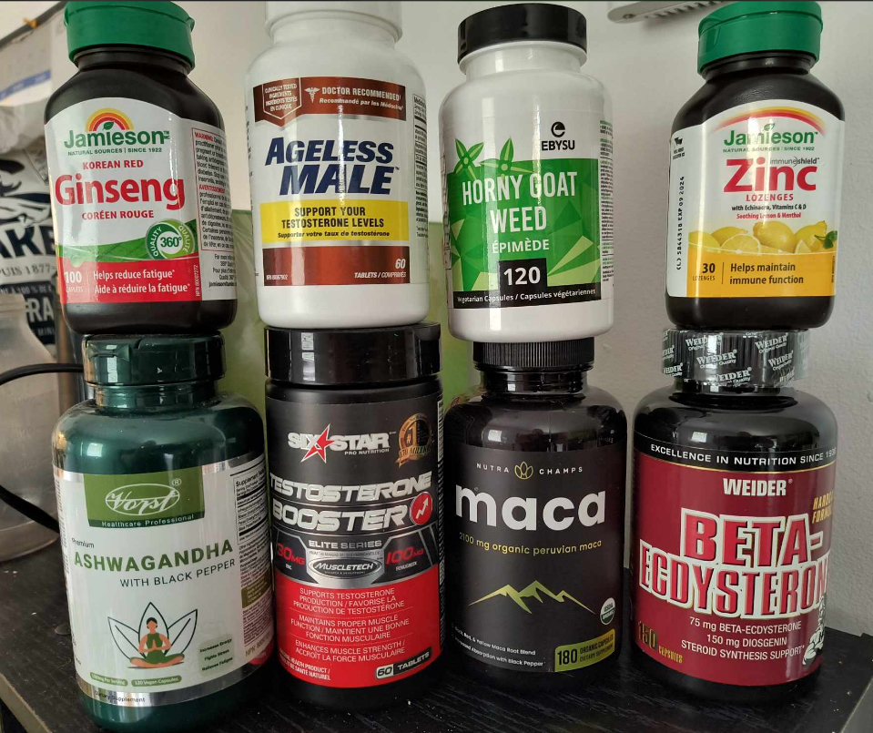 - … tout en prenant quotidiennement ces huit produits dits « naturels » censés stimuler ma production de testosterone :