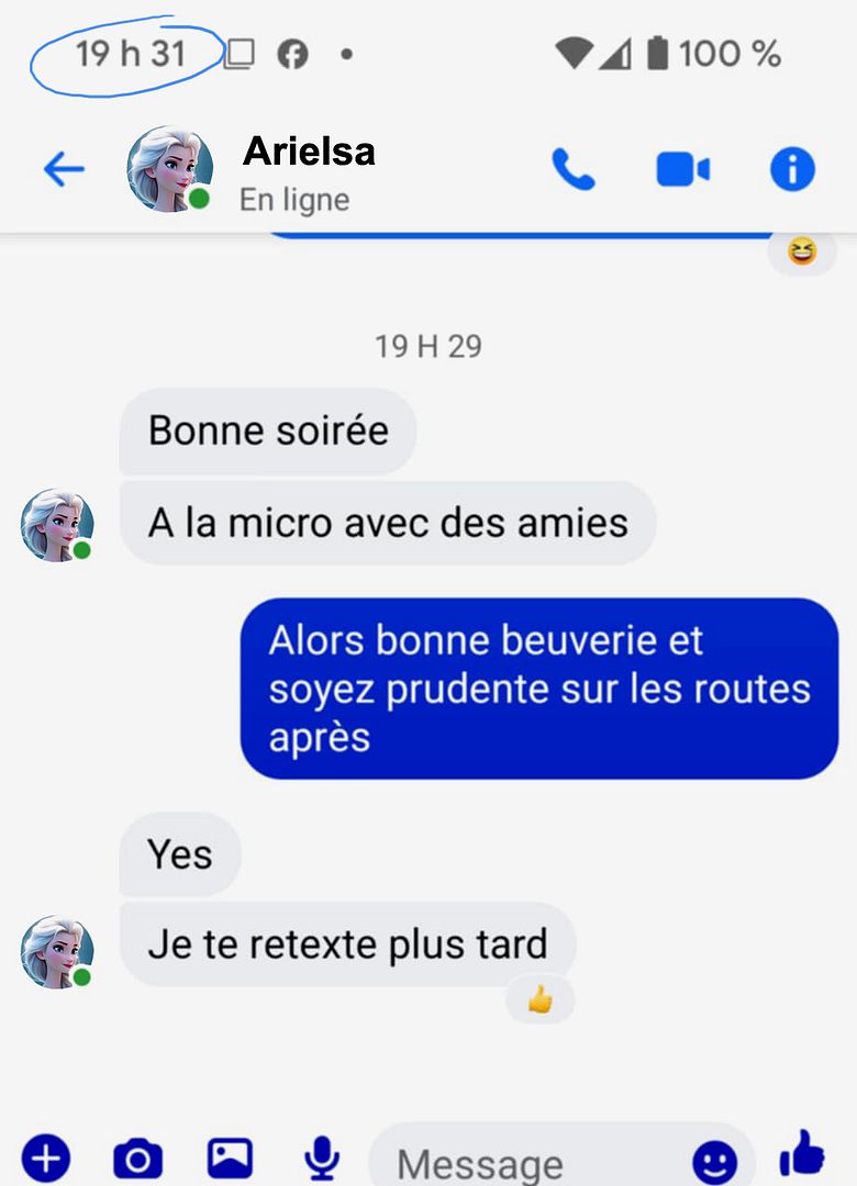 Le lendemain, je suis le seul qui démarre les conversations. Elle y répond sans les prolonger. Là encore, son comportement désintéréssé est beaucoup trop différent de nos premier 60h de communications pour être honnête. Mais je ne la confronte pas avec ça. Si je suis assez patient, je sais qu’elle me fournira les preuves par elle-même