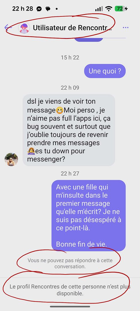 Je tiens malgré tout à connaître le fond de sa pensée, en lui demandant de terminer sa seconde phrase. Parce que, bon, qui sait, ma première impression pourrait être erronée. En attendant sa réponse, je vais jeter un oeil à son profil.
