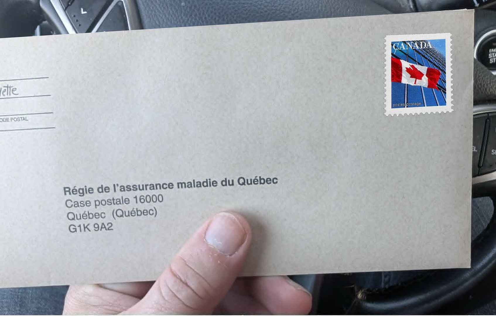 Sur ce, je ramène ma mère à sa résidence. Du courrier l’y attend. C’est le formulaire pour le renouvellement de sa carte d’assurance sociale de la RAMQ, que j’ai commandé il y a deux semaines. Je remplis la chose, je la fais signer, et direction le plus proche comptoir de Poste Canada